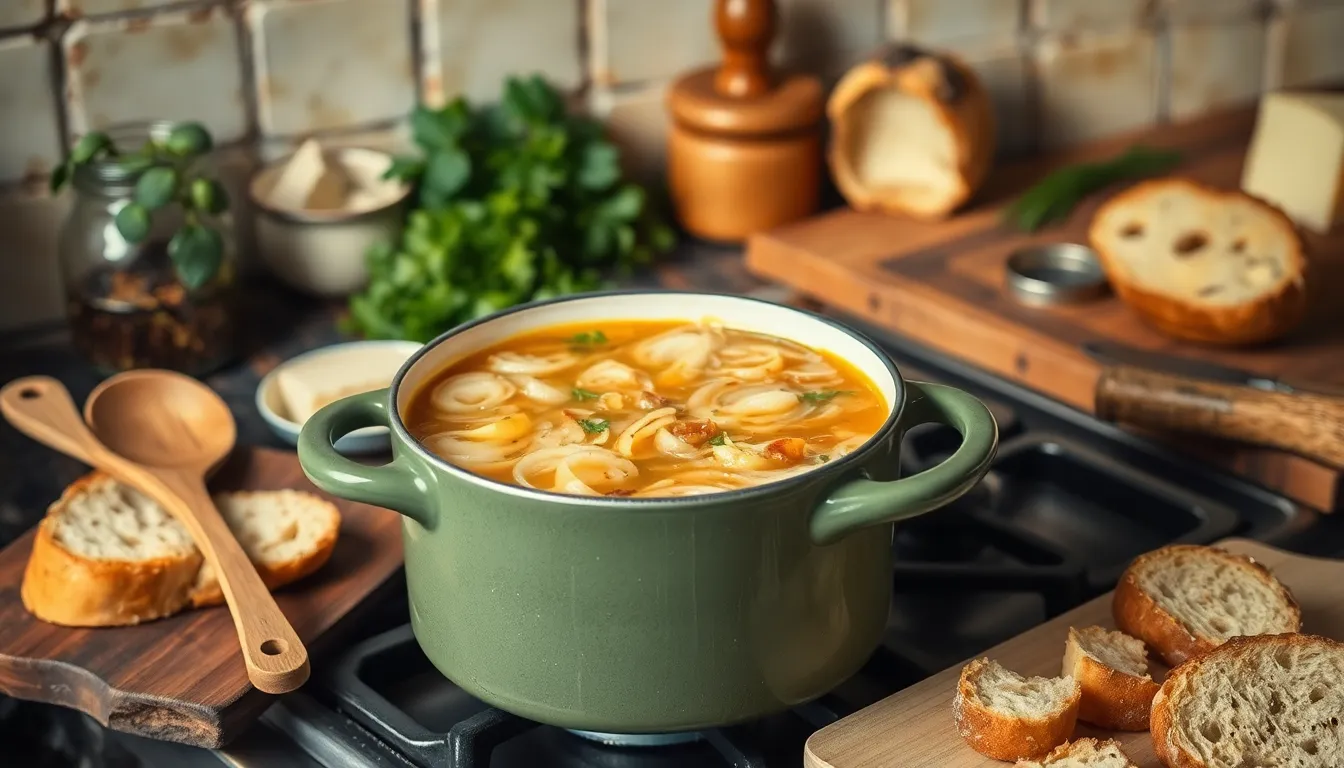 Start by adding a splash of the secret ingredient, like balsamic vinegar or dry sherry, during the onions’ caramelization. Caramelizing the onions over low heat for 30 to 45 minutes releases sweetness, which pairs beautifully with the acidity of balsamic vinegar. Stirring occasionally ensures even browning, enhancing overall flavor. Once warming the broth, mix in the secret ingredient before combining with the onions. This step balances the rich, savory notes by introducing a layer of complexity. Simmering the soup for an additional 20 minutes allows flavors to meld together seamlessly. The result transforms the soup into a sophisticated dish that impresses.